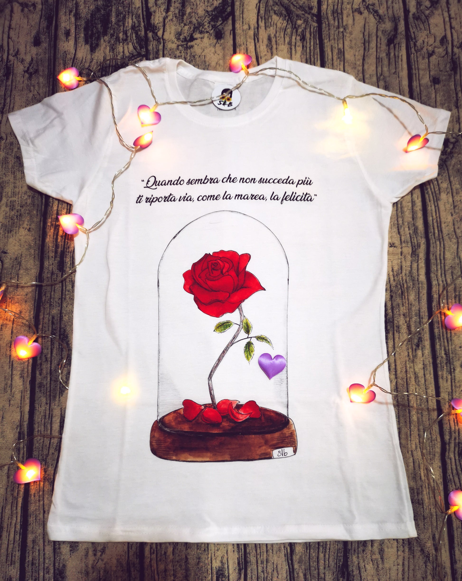 La t-shirt è realizzata al 100% in cotone, garantendo un comfort morbido e traspirante, ideale per ogni stagione. Il design sulla maglietta è unico e fatto a mano, rendendola speciale e originale. Ogni capo è pensato per offrire un tocco di artigianalità e creatività, con un disegno che si distingue per la sua qualità e dettagli.
