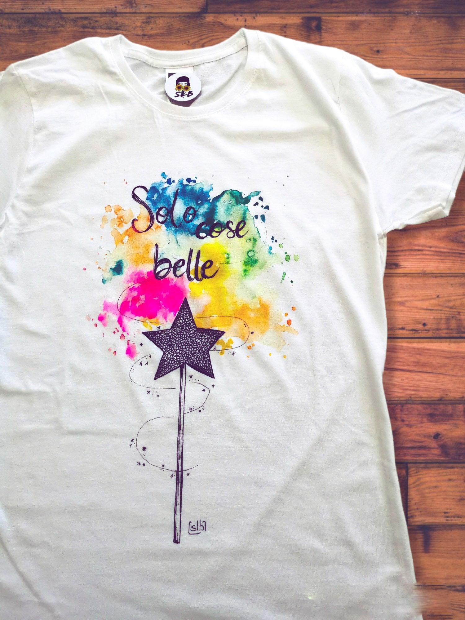 La t-shirt è realizzata al 100% in cotone, garantendo un comfort morbido e traspirante, ideale per ogni stagione. Il design sulla maglietta è unico e fatto a mano, rendendola speciale e originale. Ogni capo è pensato per offrire un tocco di artigianalità e creatività, con un disegno che si distingue per la sua qualità e dettagli.